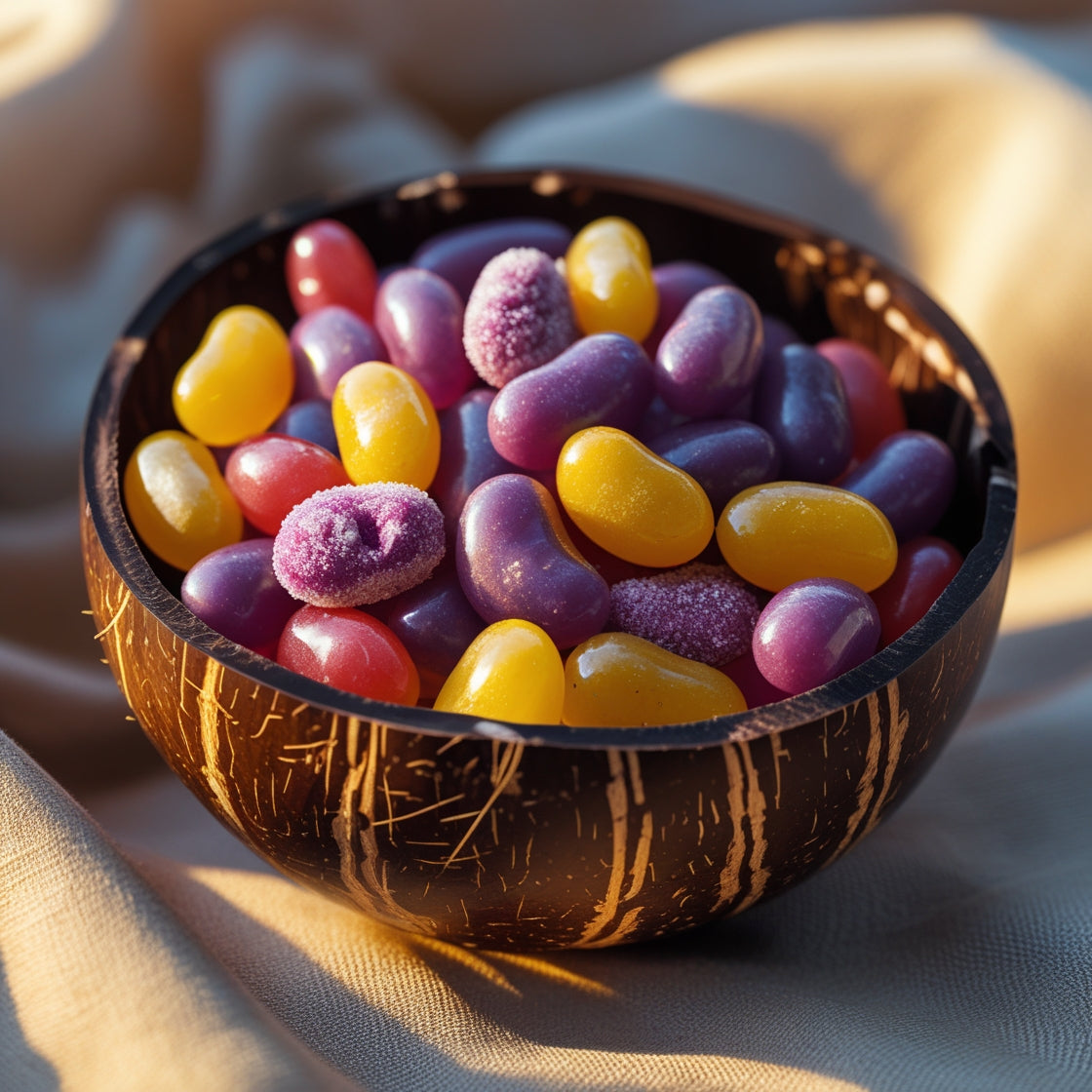 Escape to paradise with tropical-inspired jelly beans like Mango Tango, Coconut Tsunami, and Pineapple Punch. Each bite is a mini vacation!